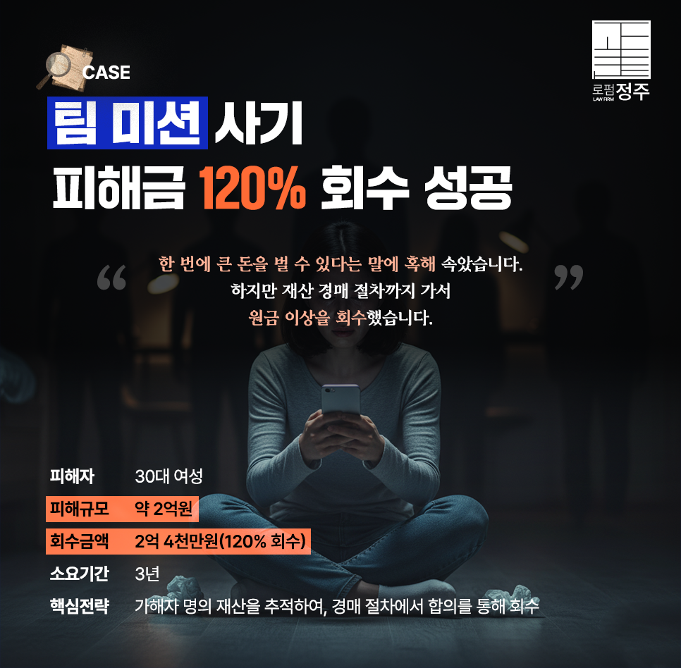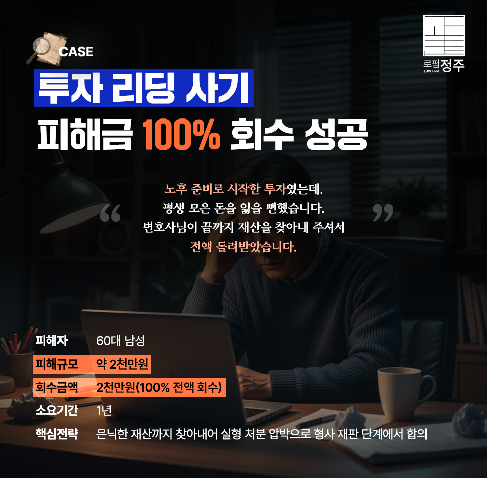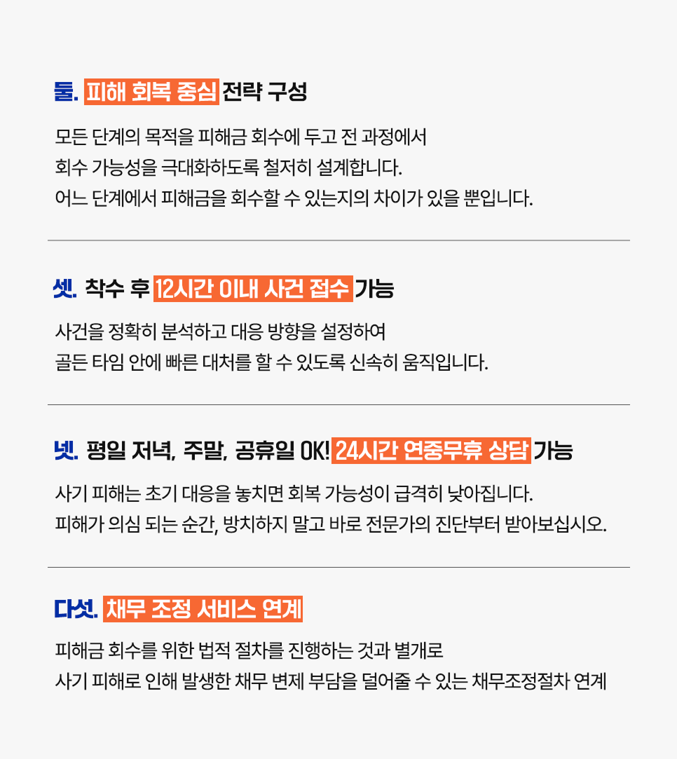 정확한 진단과 체계적인 설계로 이루어낸 피해 회수 사례들입니다