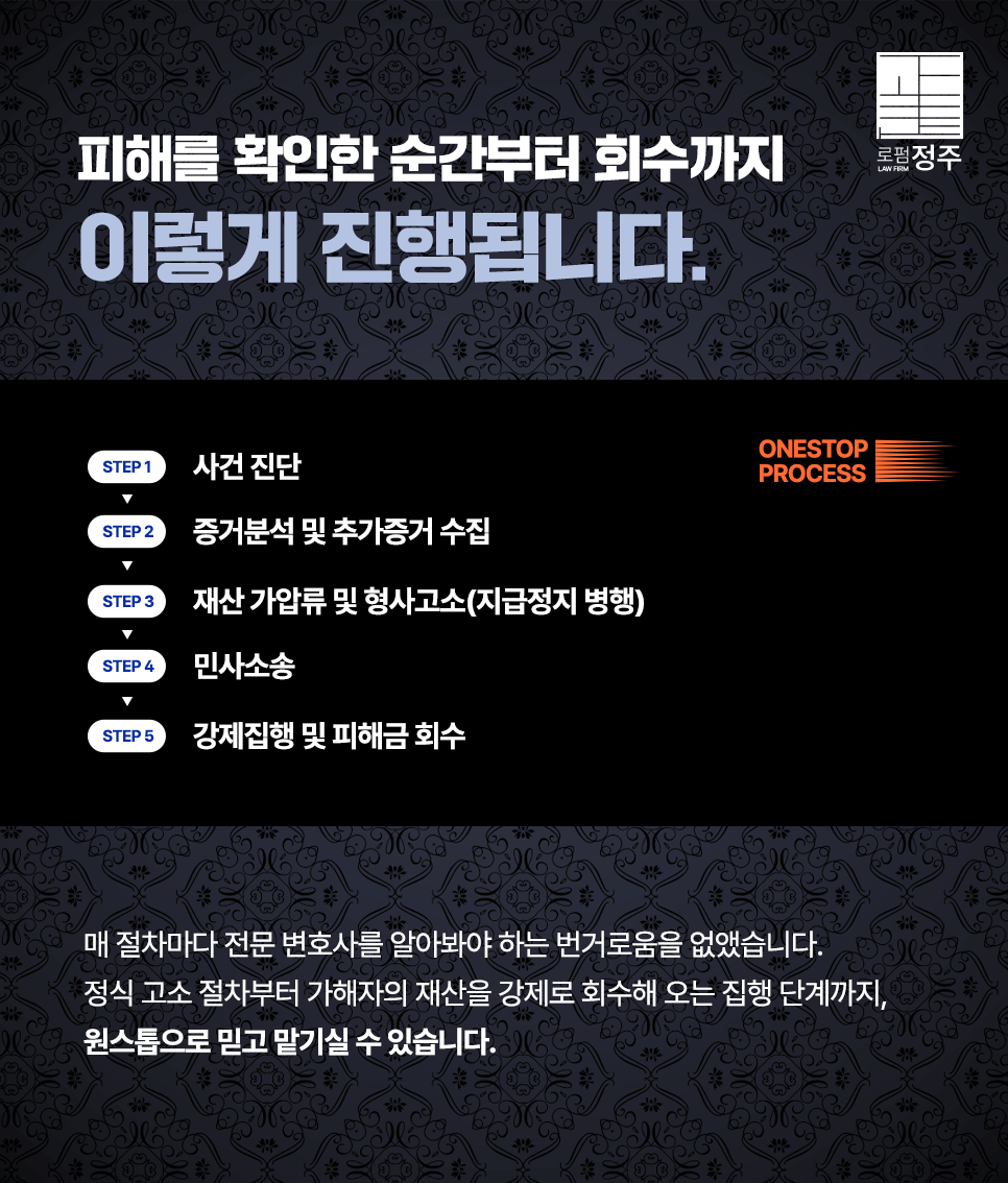 증거 수집부터 고소장 작성까지 꼼꼼히 도와주셔서 든든했습니다.